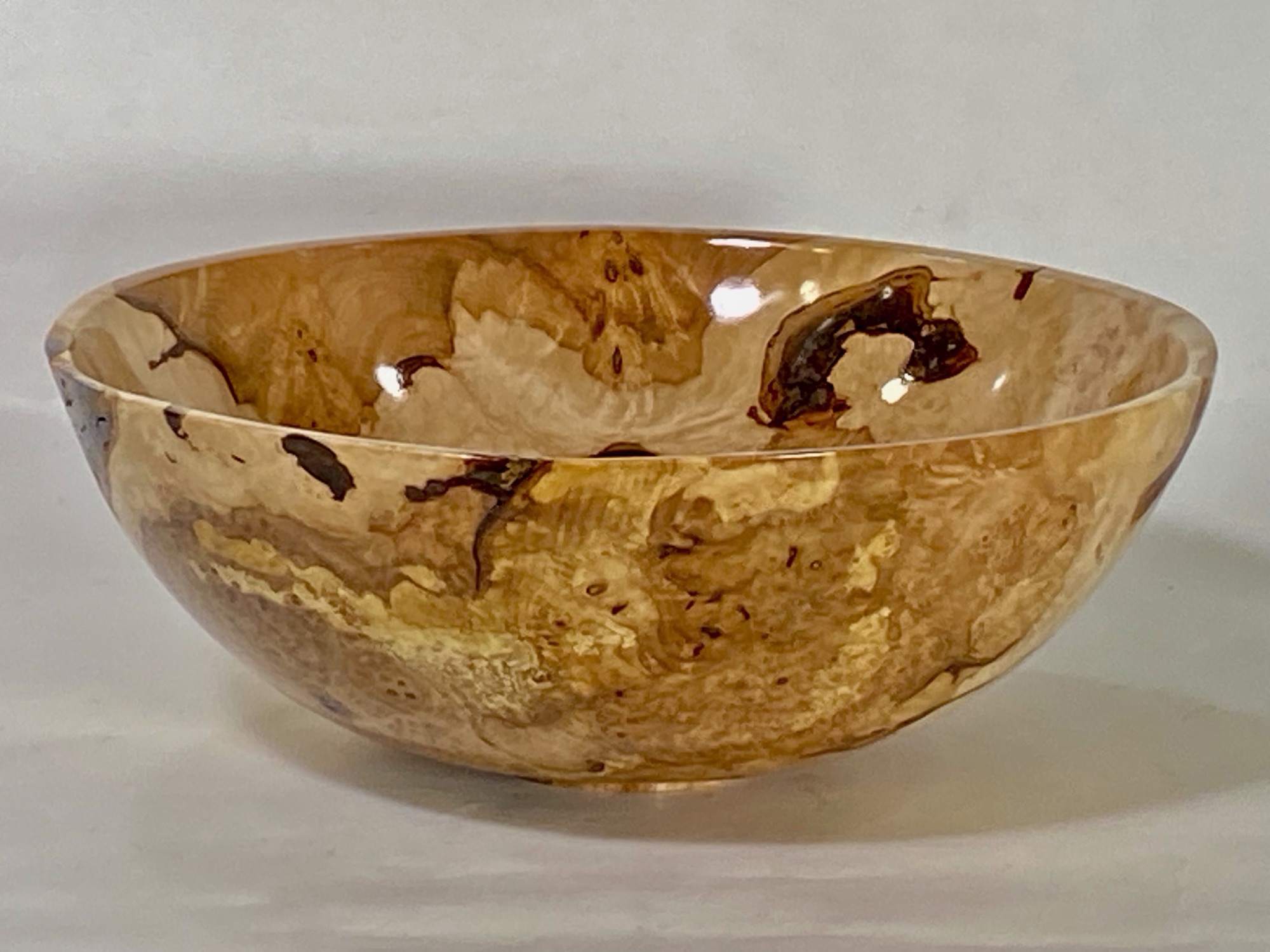 Manitoba Maple Burl Wide Rim Bowl #1417. Dimensions 11 1/2”W x 5 1/8”H. Tree log from Owen Sound, ON. Price: $575.