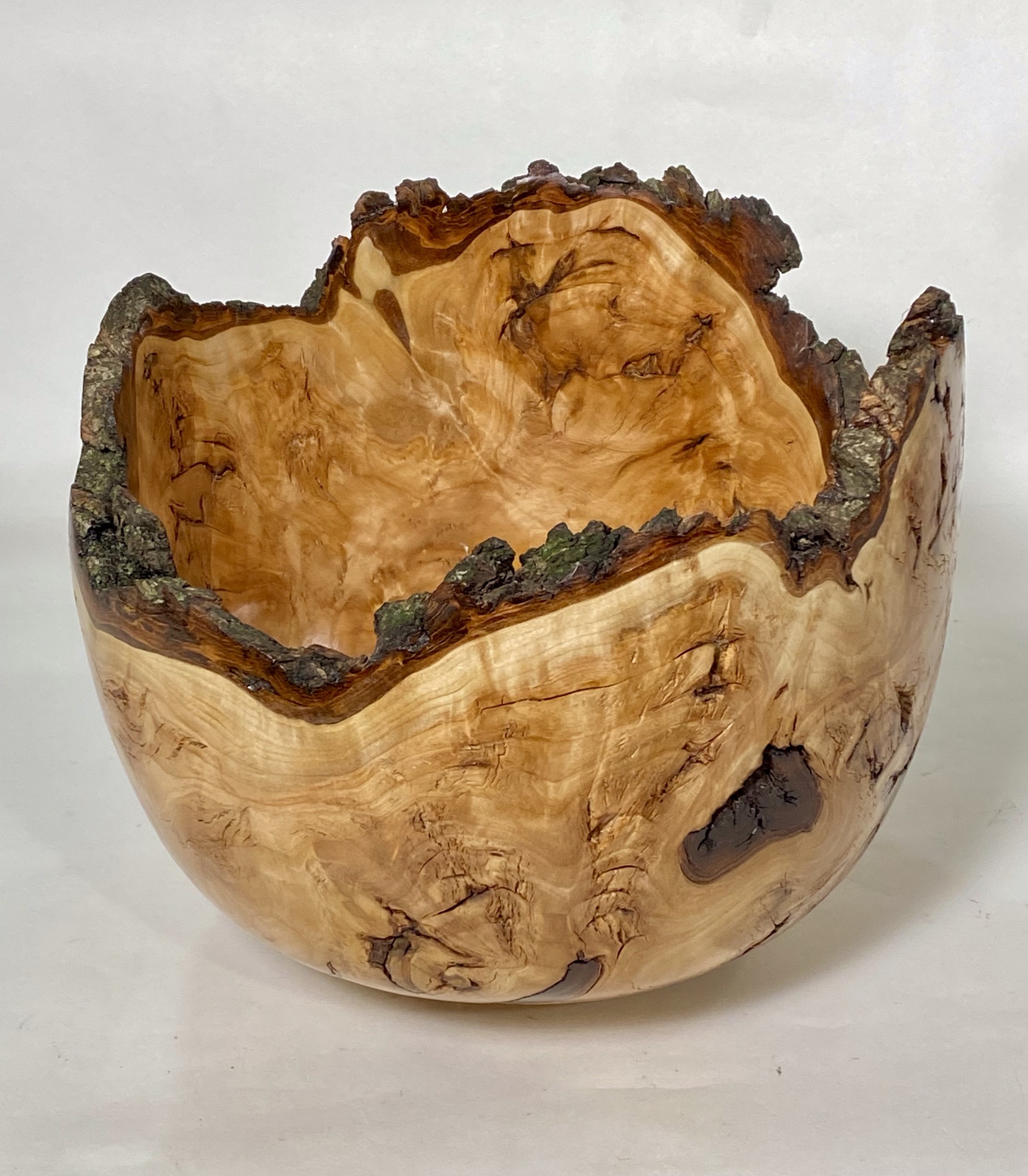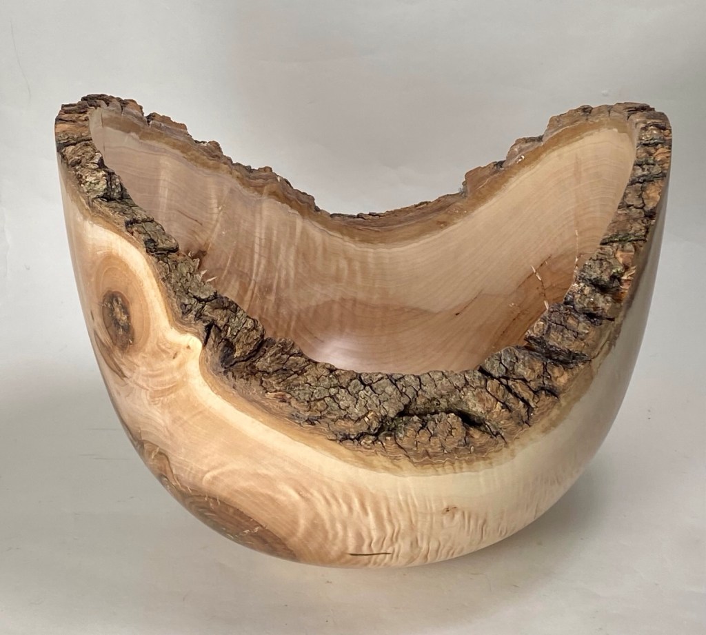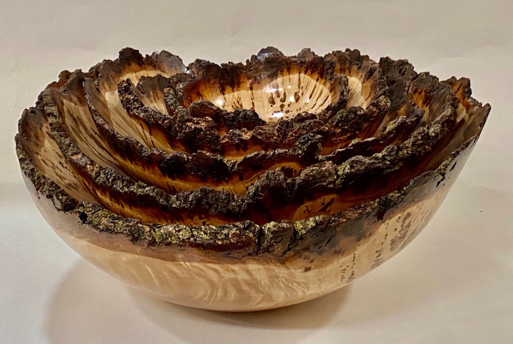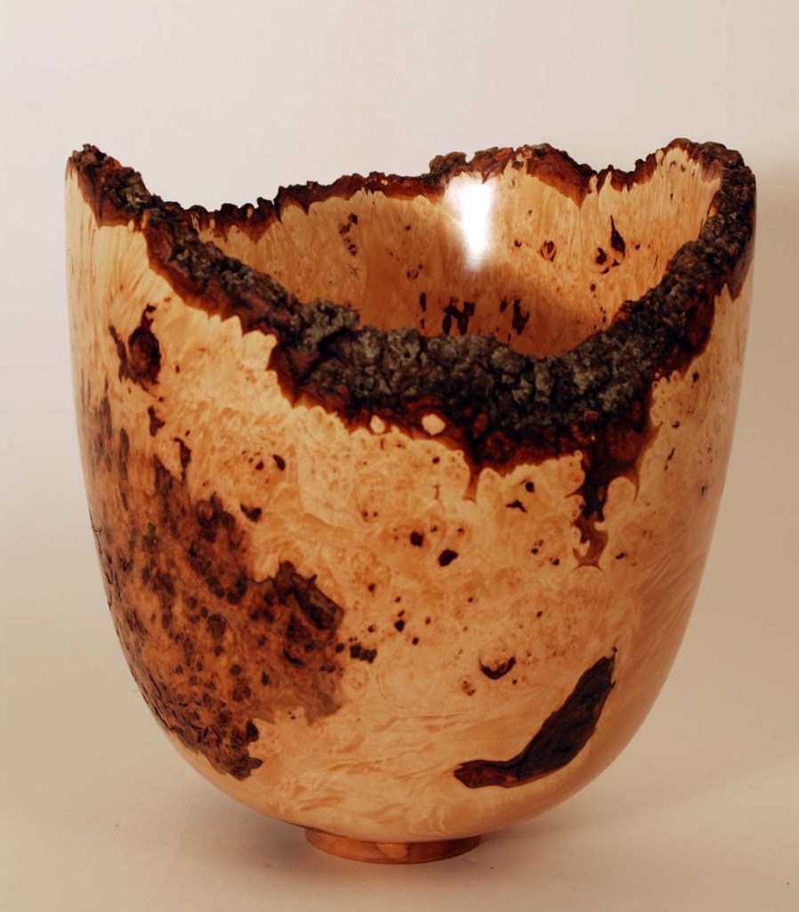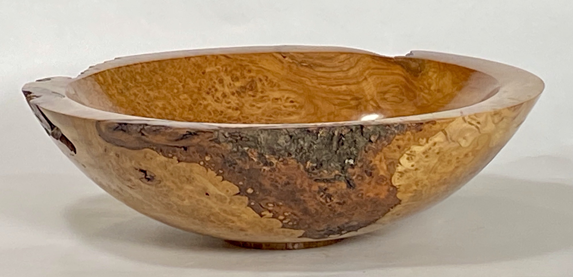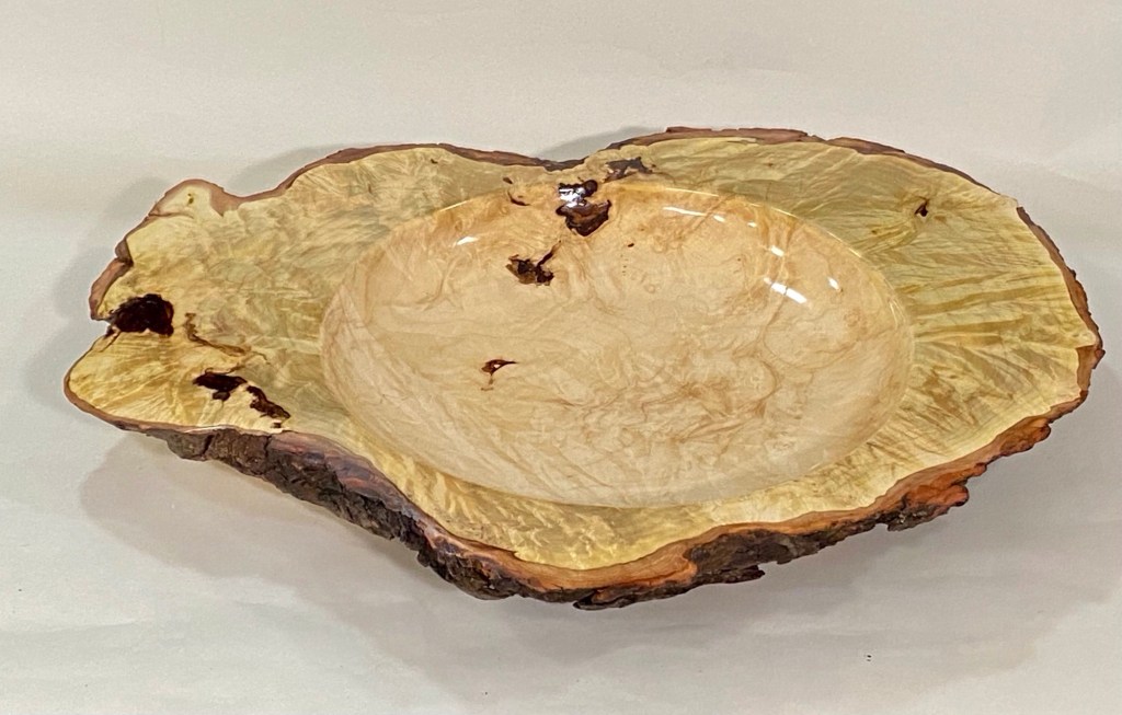 Red Maple Burl Natural-edge Artistic Bowl #1707. Dimensions: 13’’W x 9’’H. Tree log from Toronto. Price: $1400.