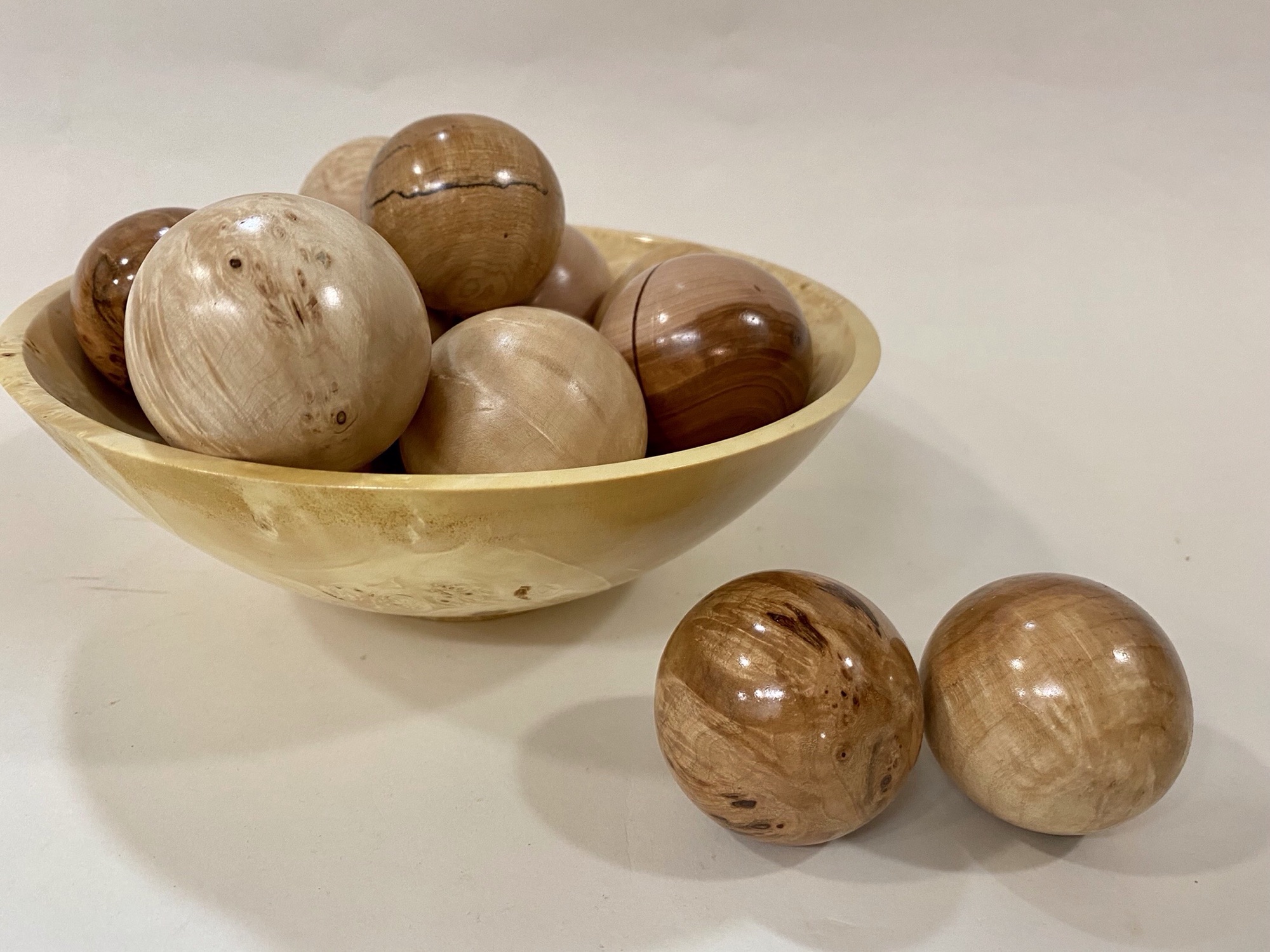Handcrafted Stress-Relief Balls. They feel great in your hand. Approximately 1 3/4’’ / 4.5cm. Maple, Cherry, Walnut, Birch.