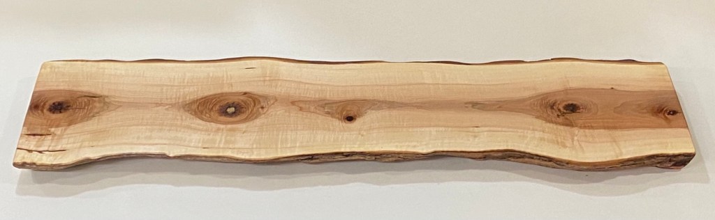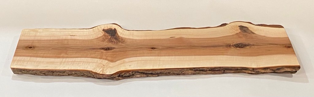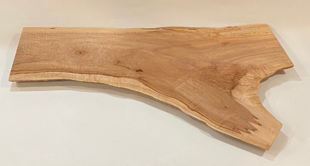Norway Maple Natural-edge Board #1026. Dimensions: 30 1/2’’L x 7 1/2’’W x 1 1/4’’H. Price: $225.